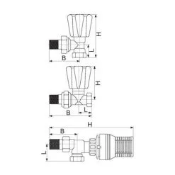 Robinet équerre Thermostatisable, Mâle RBM Dimension 1/2” B 51